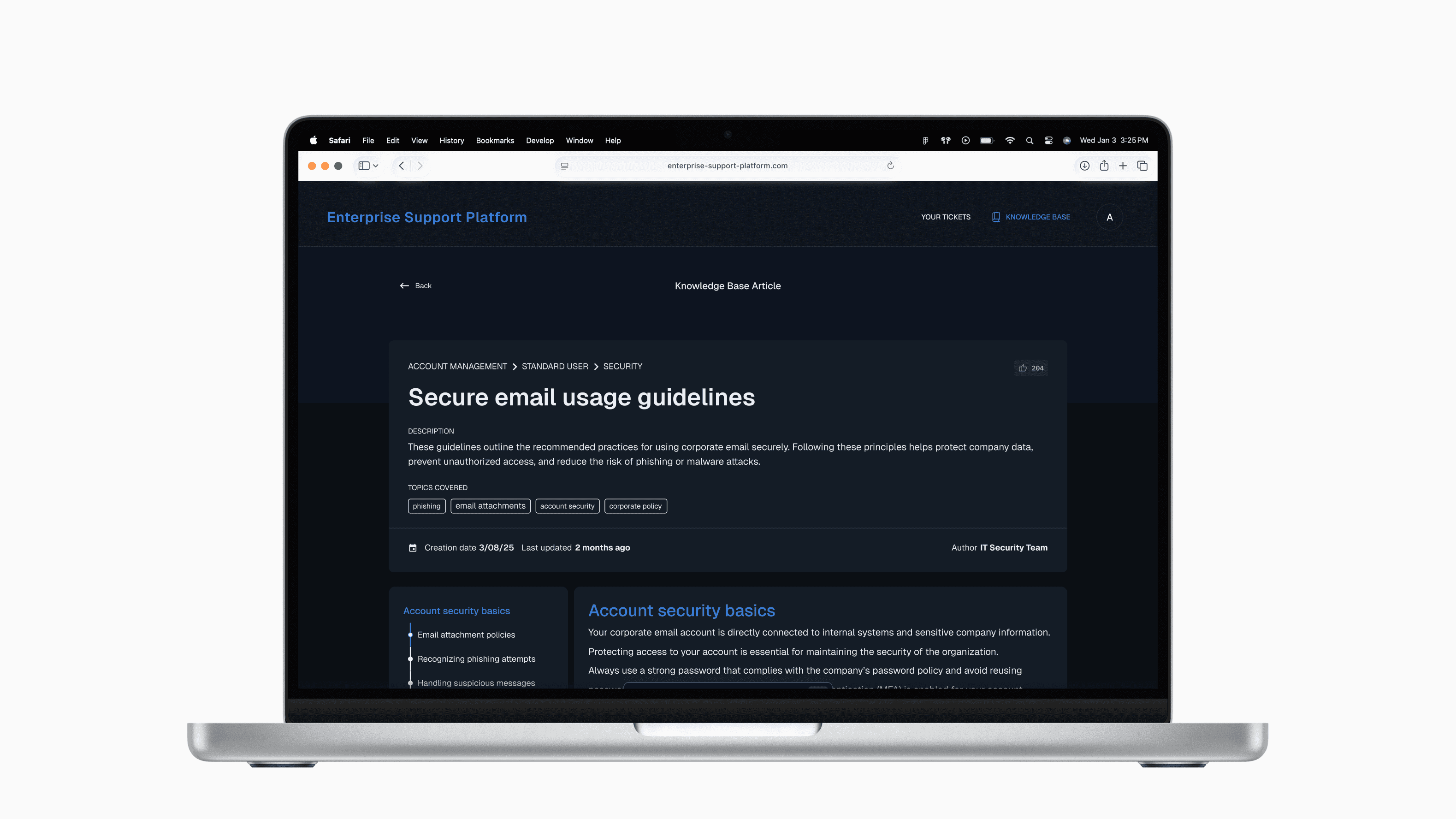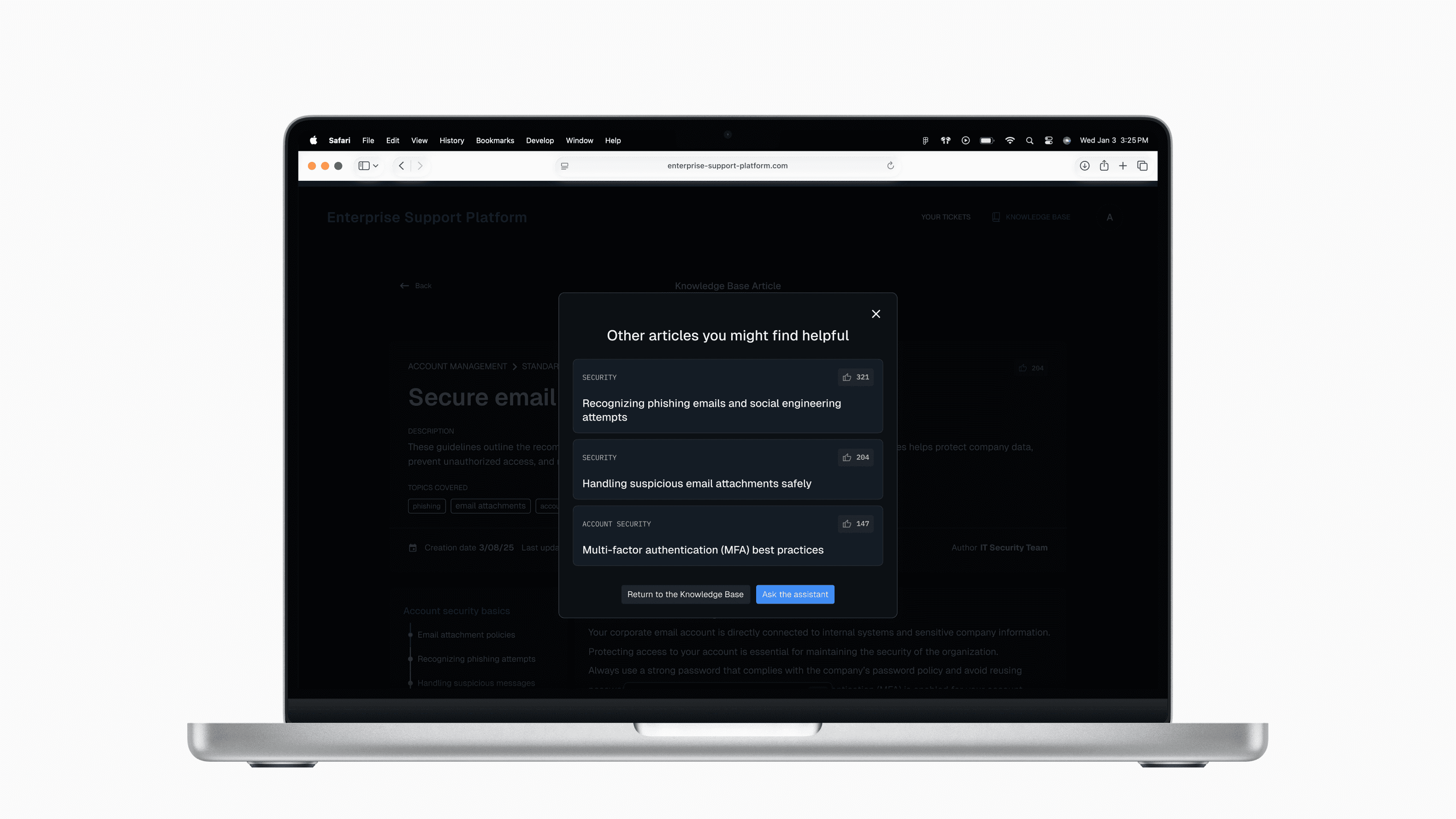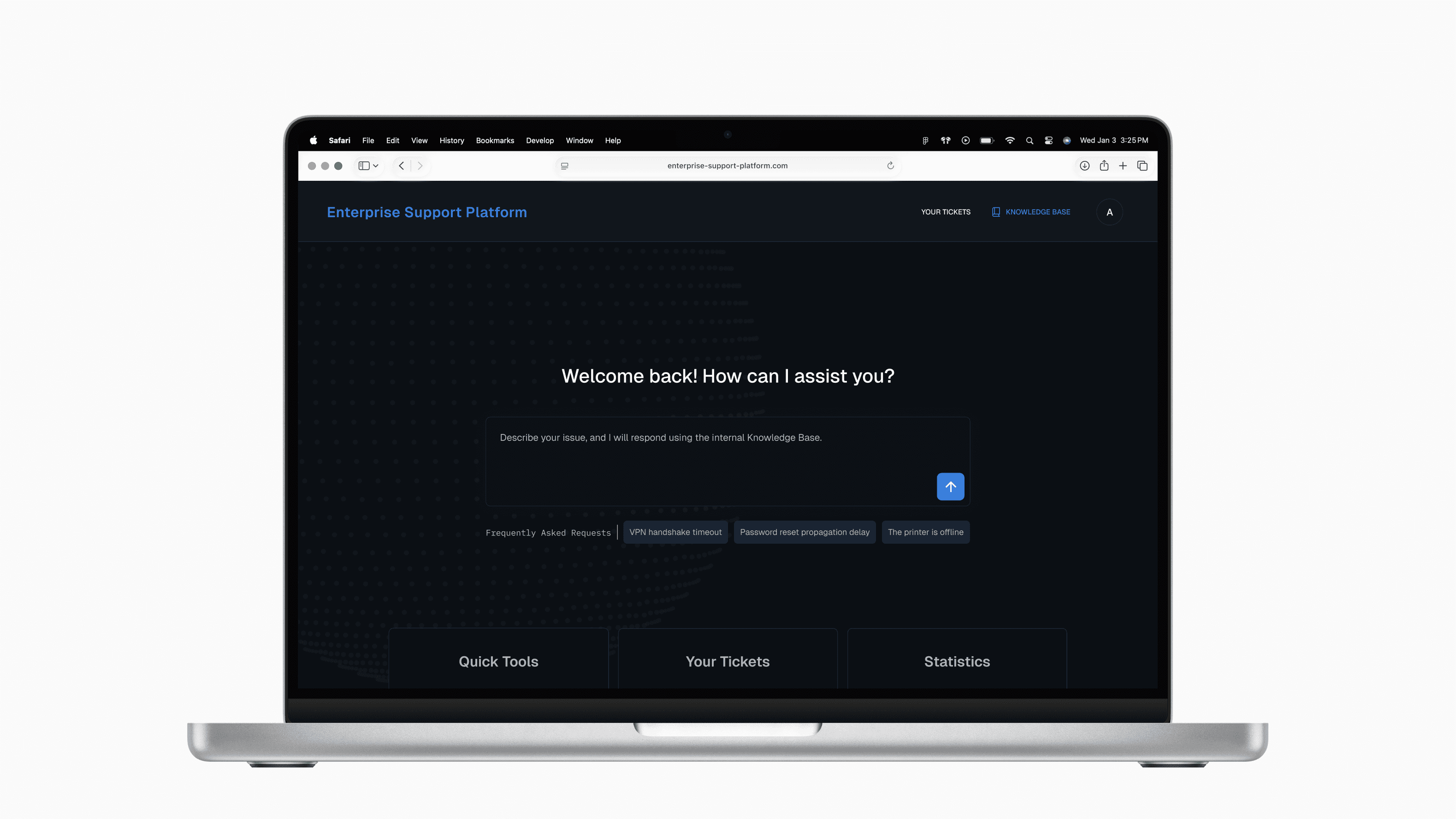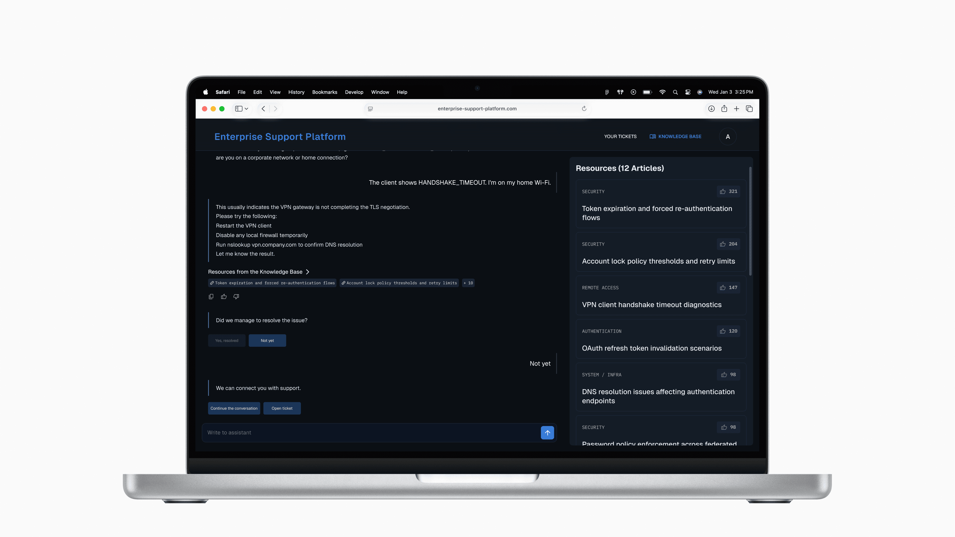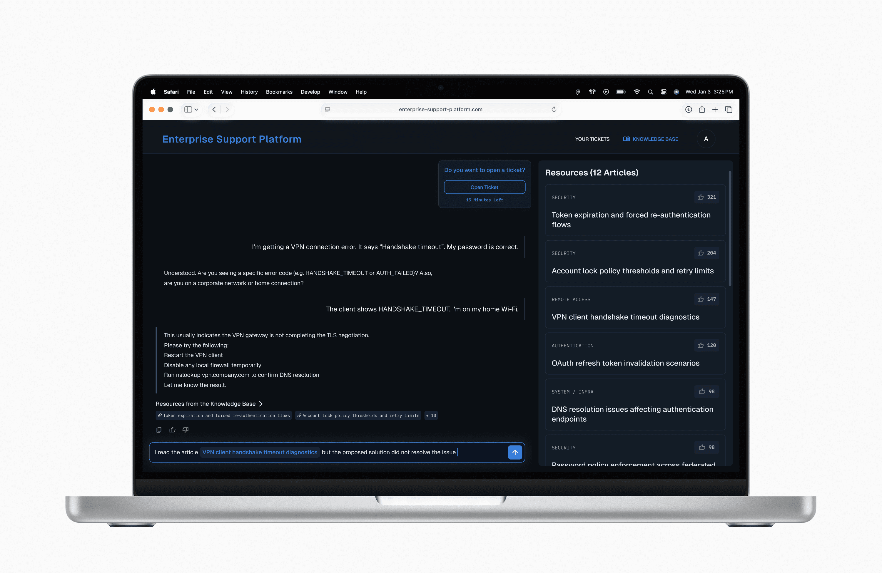This project focused on embedding an AI assistant into an existing enterprise support portal used for ticketing and knowledge management.